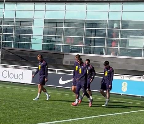 该记者写道:“英格兰球员在这个宜人的周五下午前往训练场。全部24人参加训练,斯通斯因肌肉问题今早已离队。”